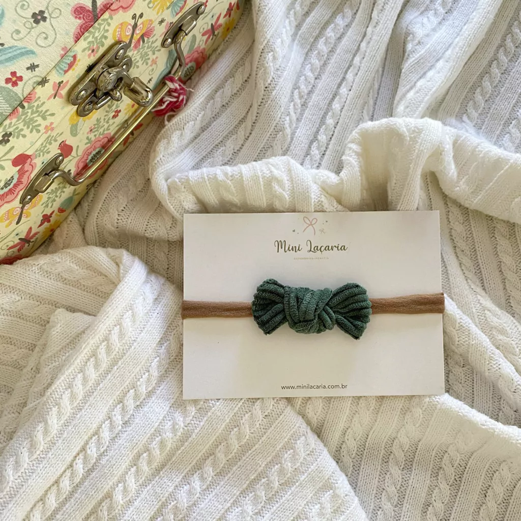 Os laços da Linha Admiração são feitos em veludo cotelê nas variantes de cor offwhite e verde.