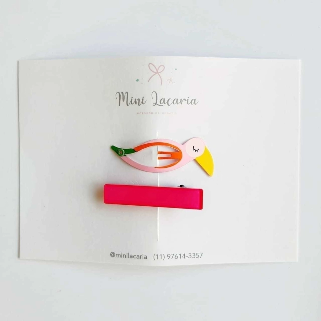 Tic tac de tucano combinado com clipe em acrílico rosa pink.