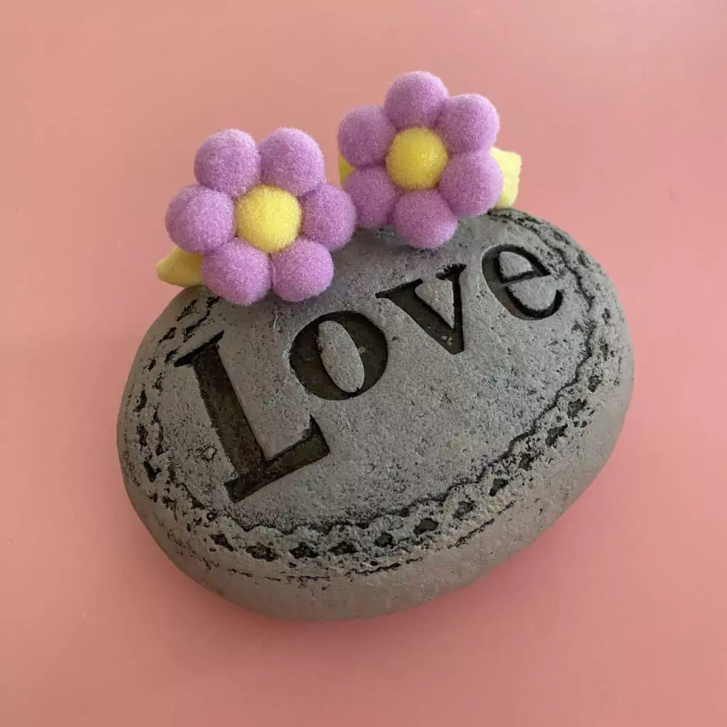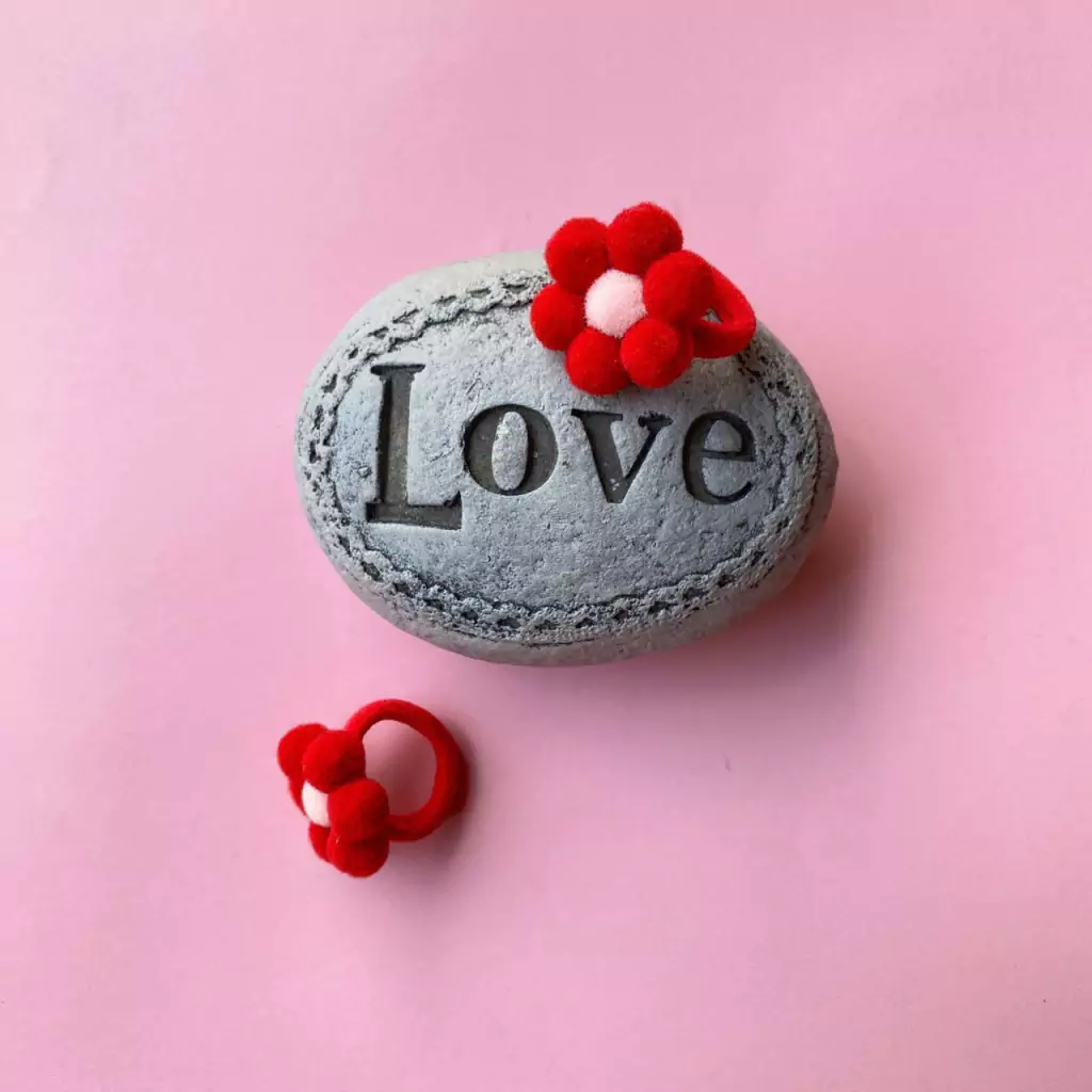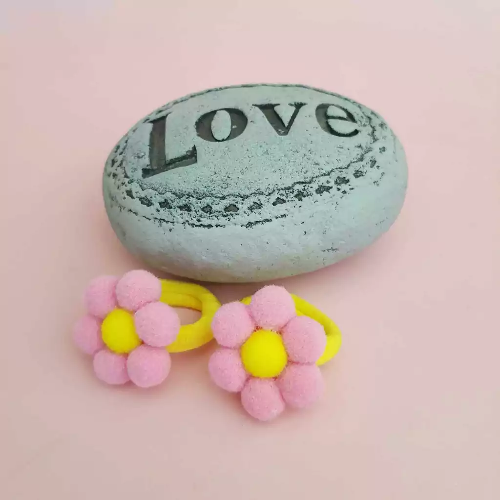 Os elásticos medem aproximadamente 3 cm e são bem macios para não puxar os fios. As flores medem aproximadamente 3 cm.