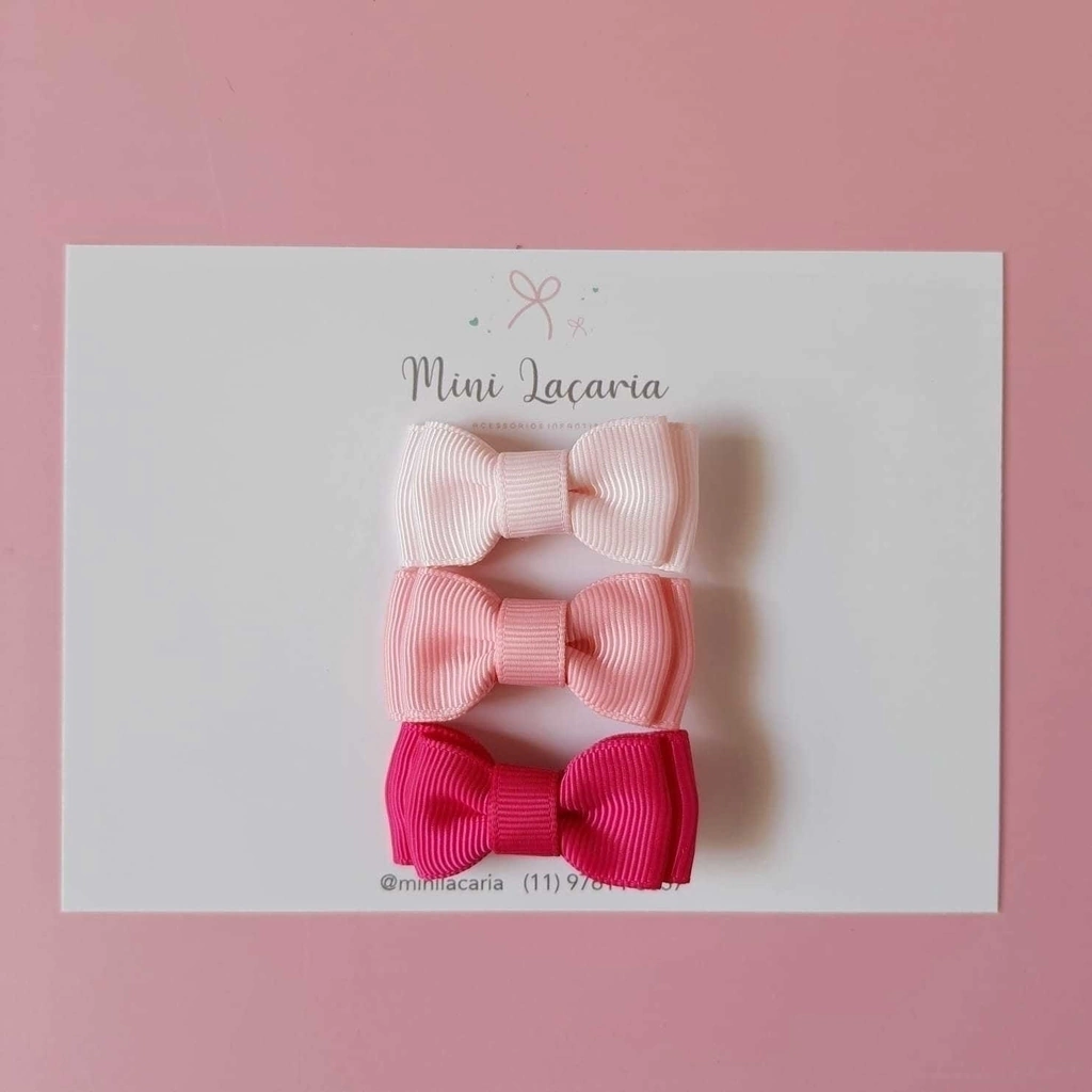 Kit Boneca P no clipe | 3 unidades de lacinhos tipo gravatinha em fita de gorgorão.
