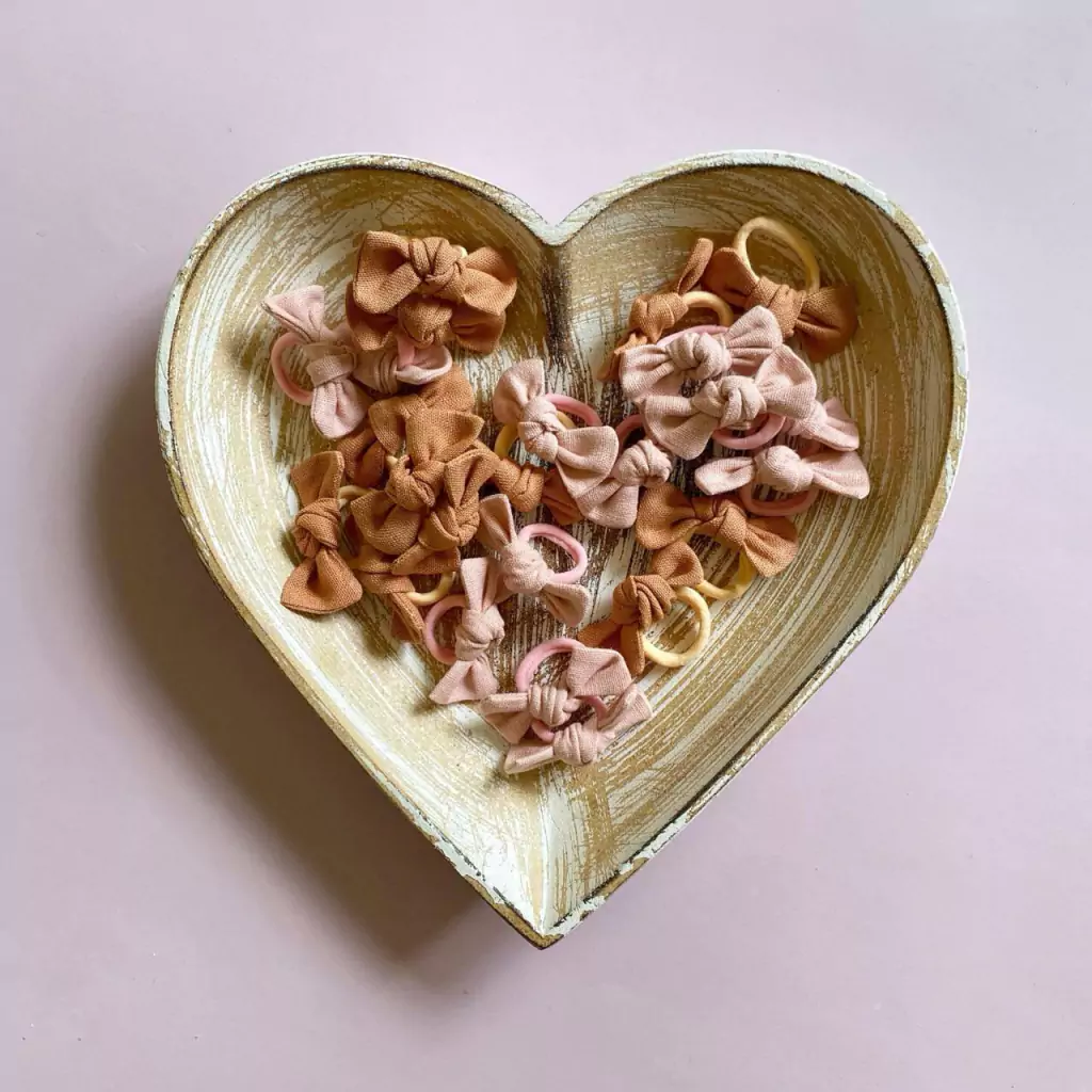 Os elásticos medem aproximadamente 3 cm e são bem macios para não puxar os fios. Os lacinhos medem aproximadamente 5 x 2 cm.