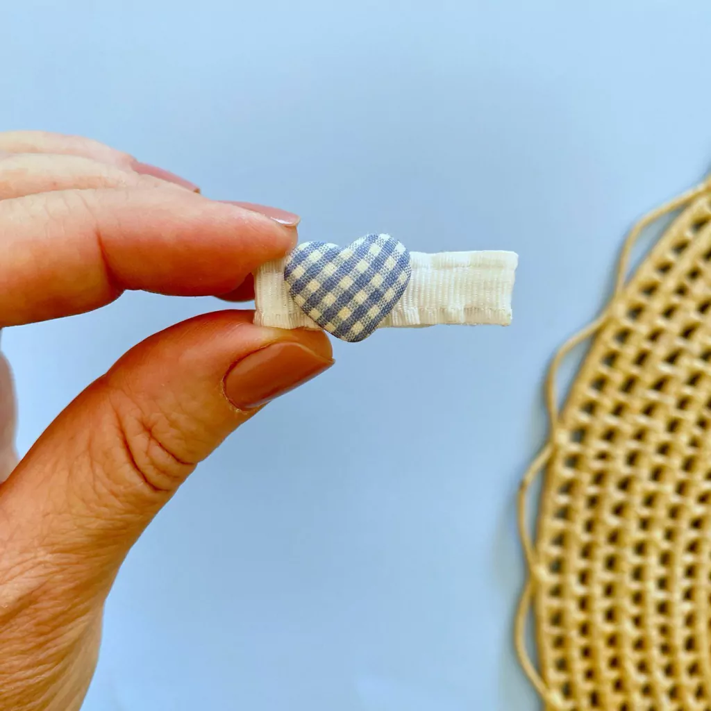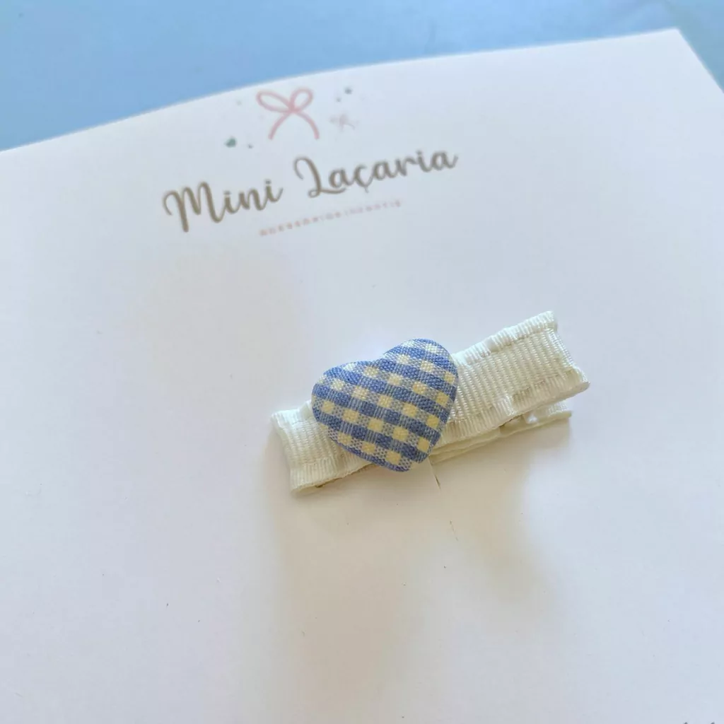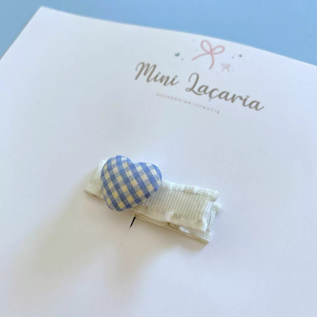 Mini Hairclip decorado com coração xadrez em azul e branco | unidade