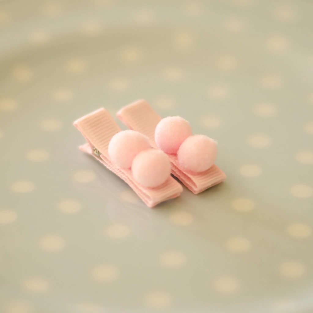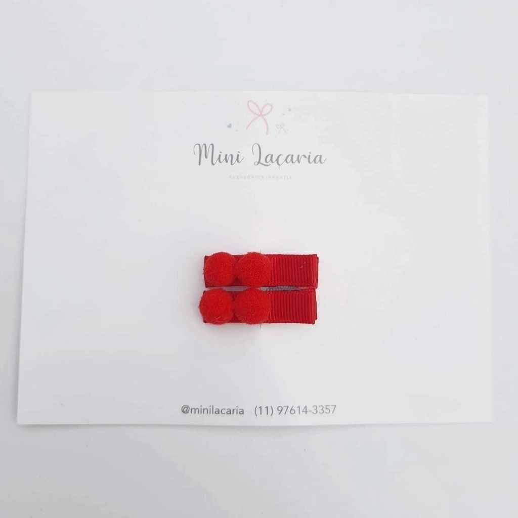 Par de clipes mini decorados com pompons coloridos.