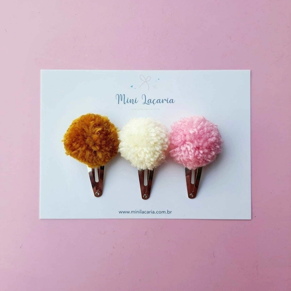 Tamanho do pompom: aproximadamente 3,5 cm x 3,5 cm.